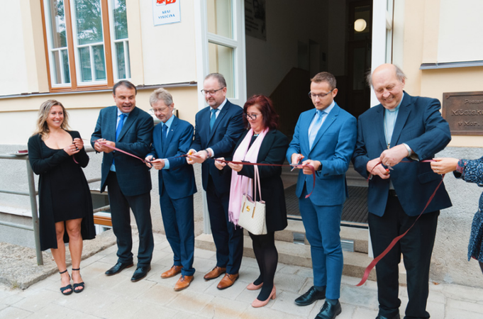 Se slovy uvedenými v titulku připil Pavel Posád, biskup českobudějovický, Gymnáziu a Střední odborné škole v Moravských Budějovicích po slavnostním přestřižení pásky nově opravené budovy moravskobudějovického gymnázia.