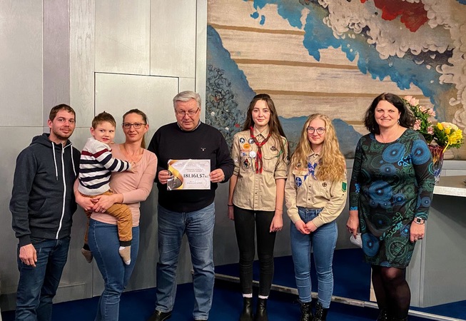 Ve středu 12. ledna proběhlo v obřadní síni MěÚ Moravské Budějovice slavnostní předání výtěžku veřejné sbírky na pomoc nemocnému Nikolasi Ježkovi z Panenské u Jemnice. Sbírku každoročně pořádá město ve spolupráci s místními skauty a skautkami. A právě jejich přínos celé akci je stěžejní. Jsou to vždy skauti, kteří vytipují potřebnou rodinu z Moravských Budějovic či okolí, v níž vyrůstá nemocné dítě, a snaží se ji touto cestou podpořit.