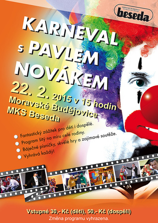 Ve velkém sálu MKS Beseda se zítra, 22.2. 2015, uskuteční dětský karneval. Čeká na vás spousta zábavy a soutěží. Celým programem bude provázet kapela Family pod vedením Pavla Nováka mladšího. Program bude spetřen nejen písničkami, ale i zábavným vyprávěním a spoustou her pro děti všeho věku. Cena vstupného je 30,- Kč pro děti a 50,- Kč pro dospělé. Přijďte si se svými ratolestmi, vnučkami a vnoučky tuto neděli v 15 hodin spestřit denní rozvrh a na chvíli se pobavit.