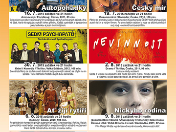 Autopohádky, Nevinnost, Ať žijí rytíři nebo například Největší z Čechů. To vše a ještě mnohem více můžete spatřit od 16. 7. 2015 v Letním kině v Moravských Budějovicích.
